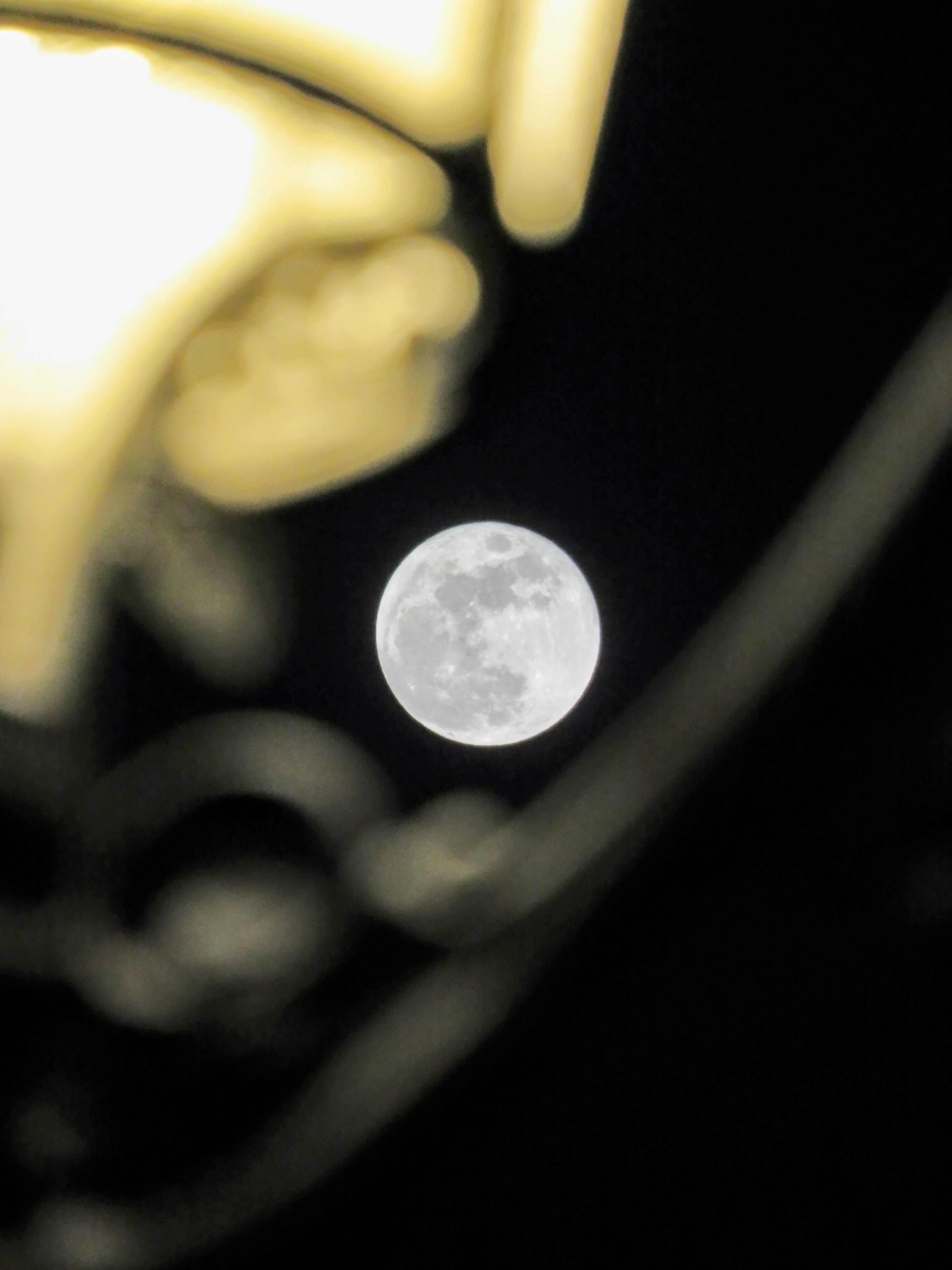 Había árboles cerca cuando recordé que llevaba la cámara encima para la luna llena. There were trees around when I remembered I had carried the camera with me for picturing the full moon.