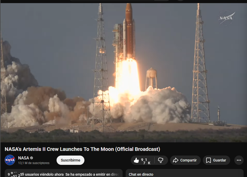 Aunque ocurrió en la madrugada del siguiente día, me puso muy feliz ver en directo el lanzamiento de la misión Artemis II en internet gracias a una querida amiga 💙