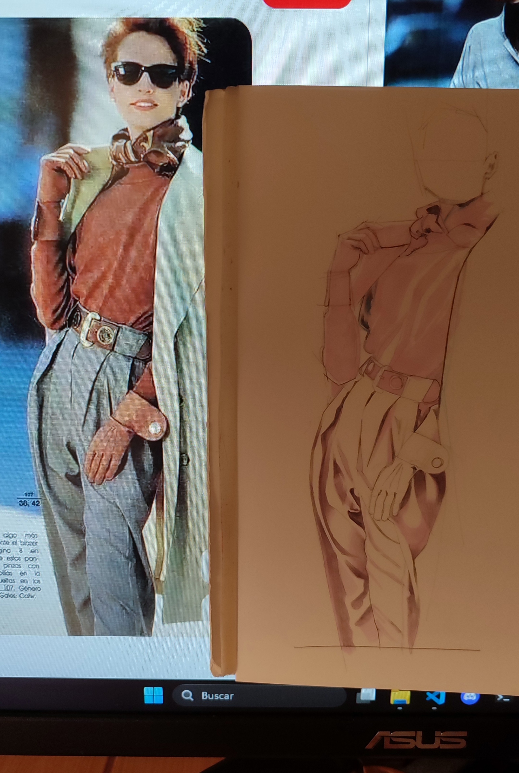 Trabajando por la noche, decidí hacer un estudio de ropa, ya que llevo un tiempo pensando en practicar dibujar ropa y las arrugas, etc. Cogí una referencia que me apetecía en Pinterest.