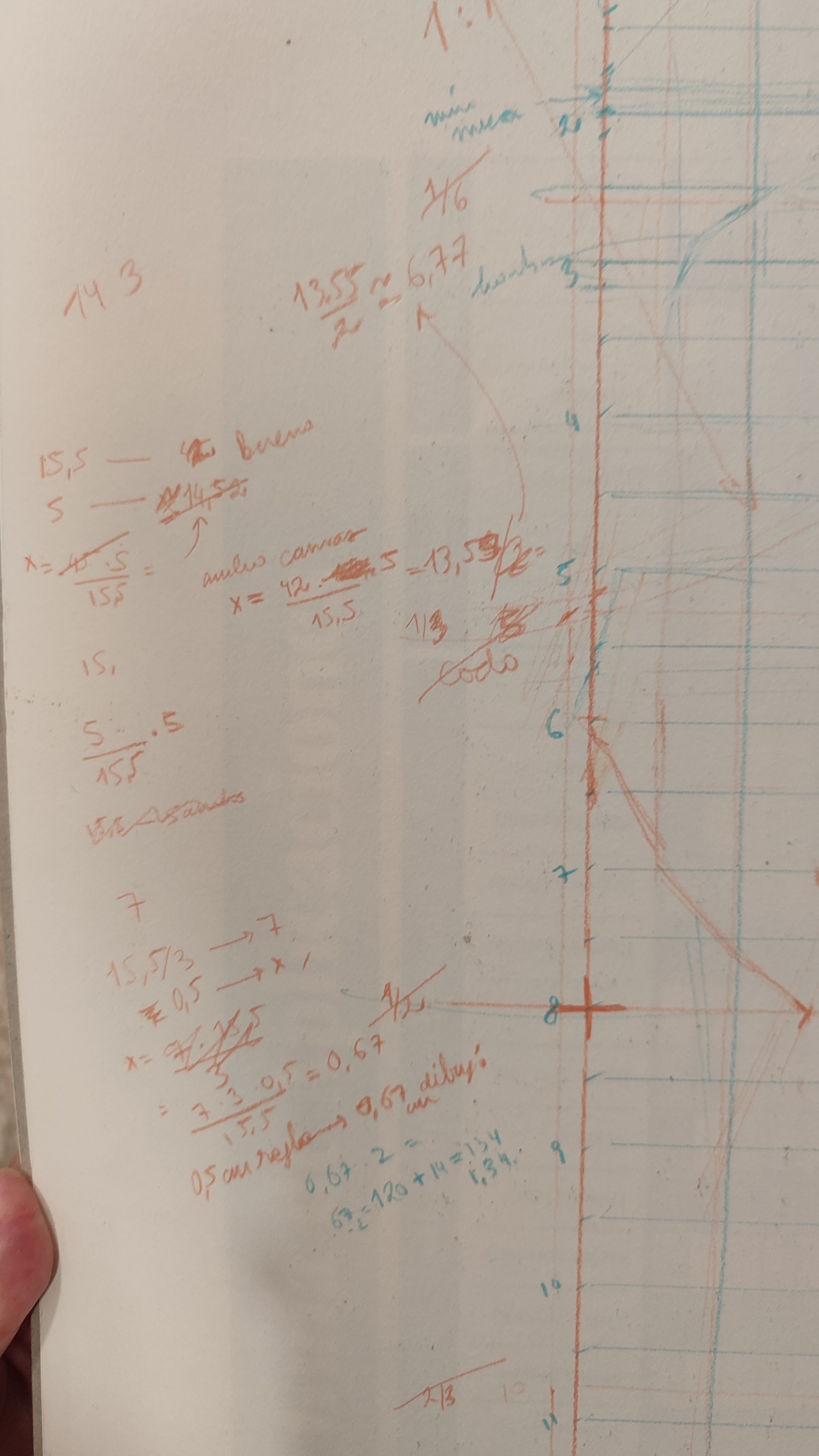 Como he decidido utilizar mi plantilla de escritura transparente a modo de cuadrícula, decidí a ojo una altura y un anchos de cuadros que dibujar en el cuaderno de DIN-A3 y…cuánto tiempo le dediqué y qué mal me salió.