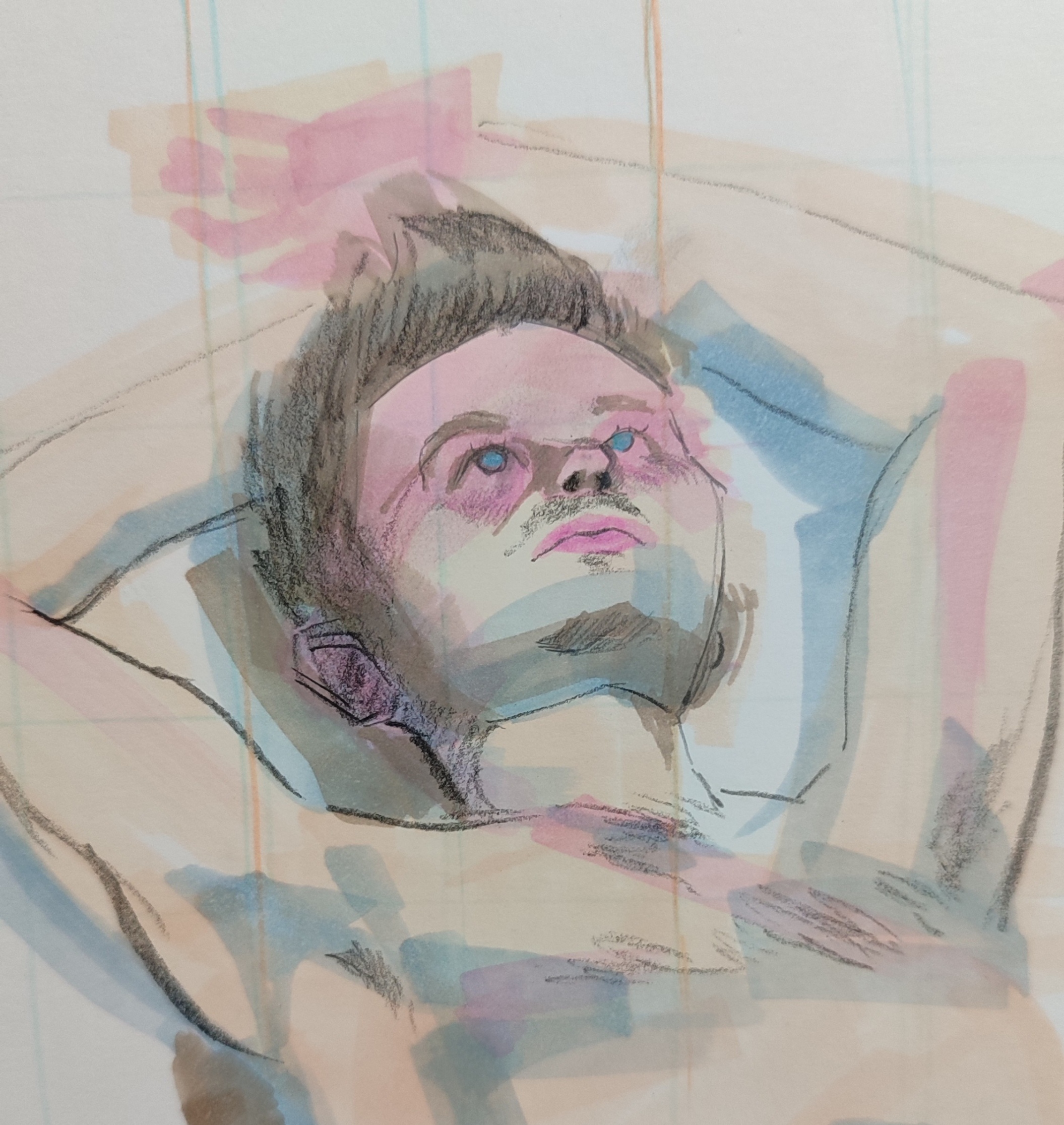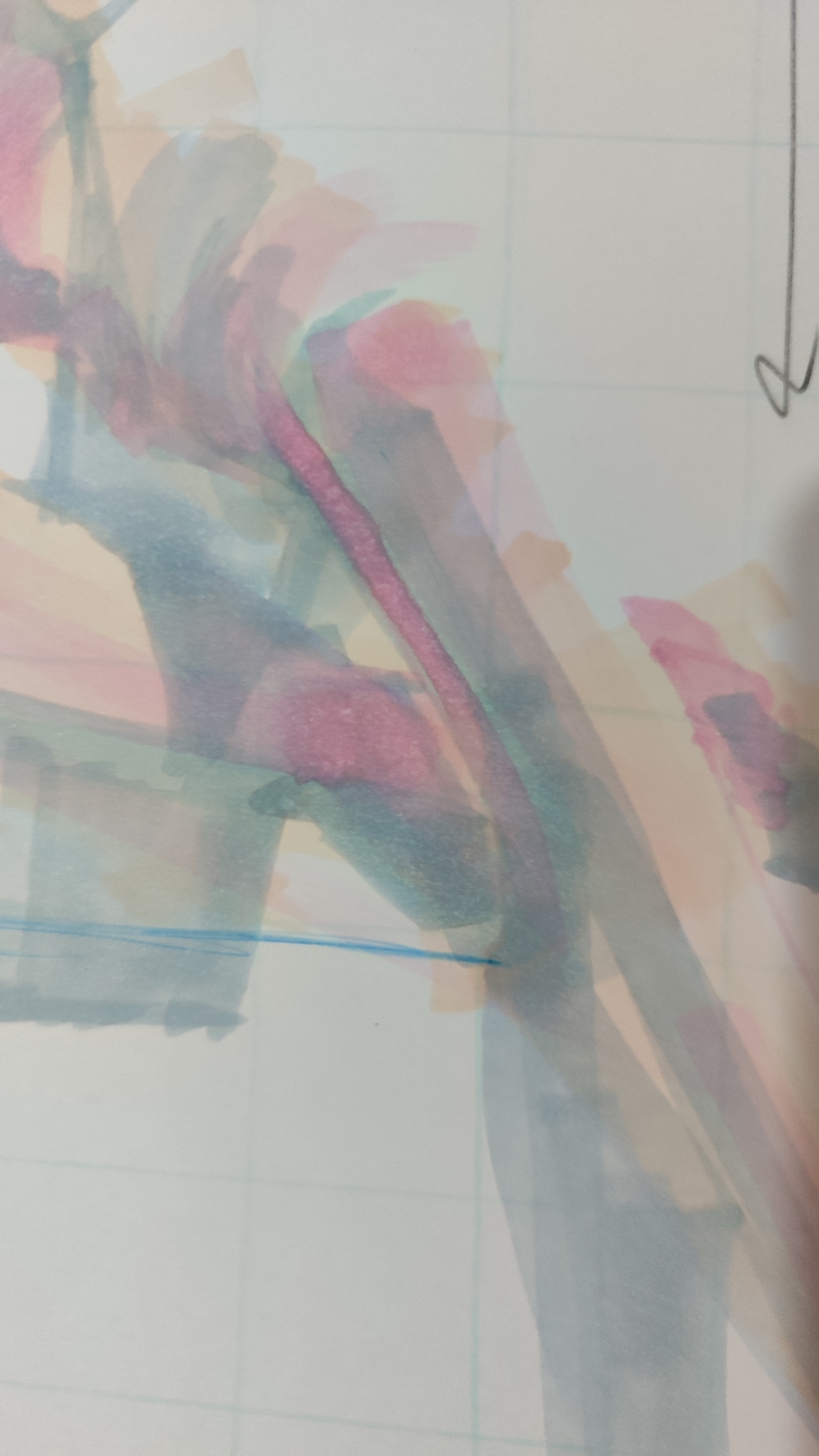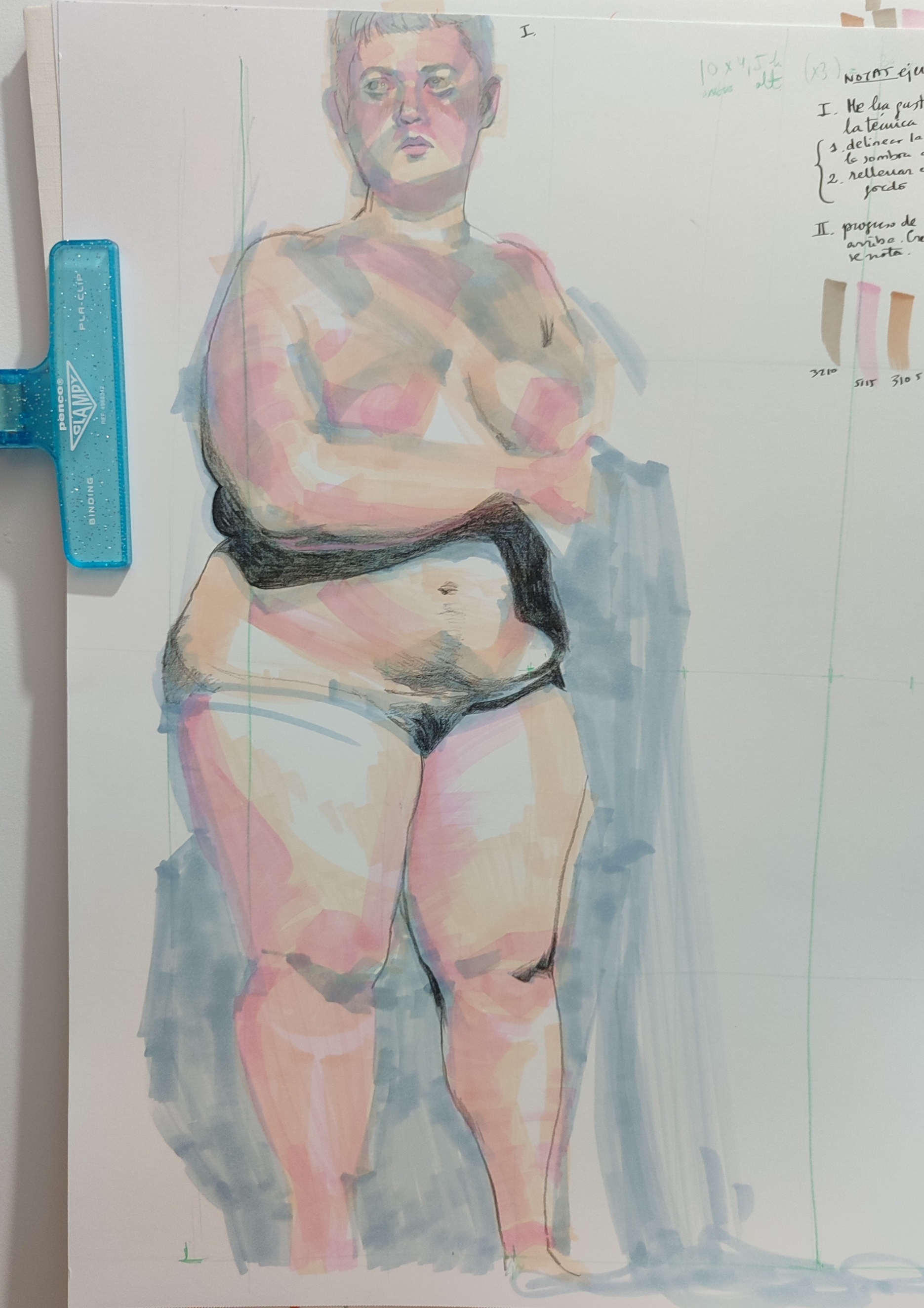 Esta es la continuación del siguiente dibujo. Intenté enfocarme un poco más en hacer más parte de dibujo. Me dio un poco de palo no conseguir hacer más porque aunque la sombra del brazo sobre el estómago quedó guay, se nota que falta el delineado del resto del cuerpo.