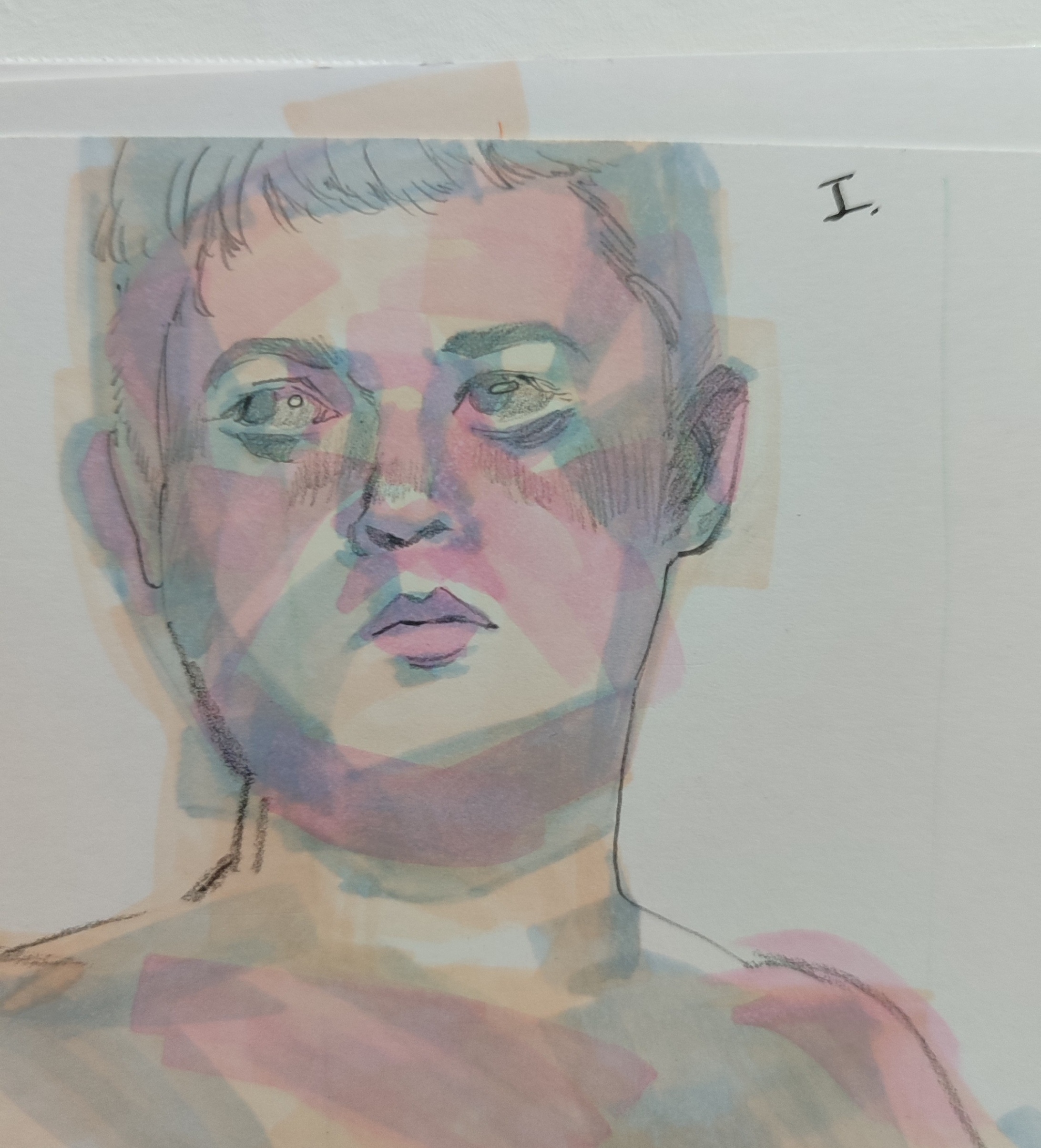 Empecé intentando no pensar en lo mucho que detestaba el coloreado que hice el día anterior del primer modelo y terminé contenta por cómo me quedó su cara. Añadir el rosado a la paleta de colores fue todo un acierto.